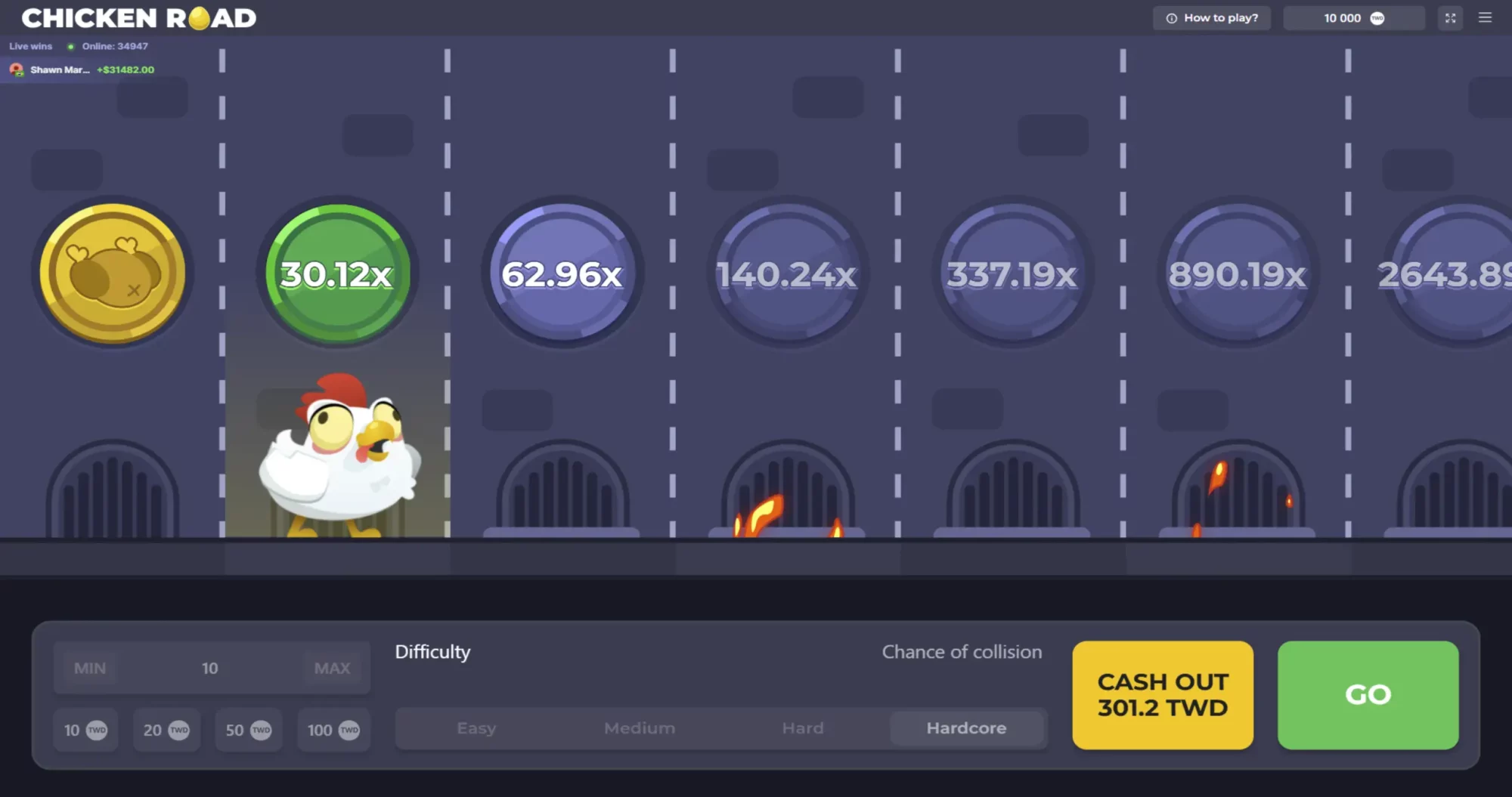 欢迎来到“Chicken Road”! 加入勇敢小鸡追逐金蛋的惊险冒险之旅。避开危险,收集奖励,并管理风险,最终达成目标。 游戏提供四个难度等级:简单、中等、困难和终极。更大的回报伴随着更大的风险。 你准备好带领小鸡走向胜利了吗?立即开启你的旅程!