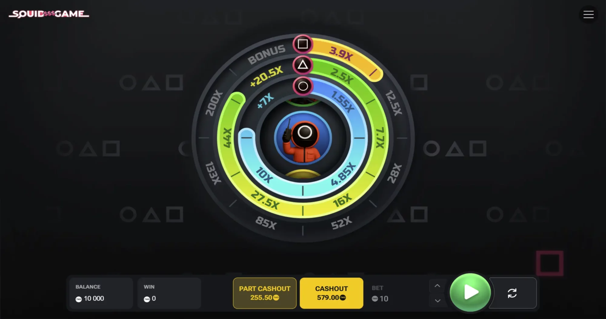 Squid Game是一款碰撞式轮盘游戏,让你掌控每一次旋转。游戏灵感来源于《魷魚遊戲》系列的惊险玩法,每一轮都是在安全与风险之间的博弈。不怕失败,勇敢收集奖励符号,累积奖金,赢取更多收益!